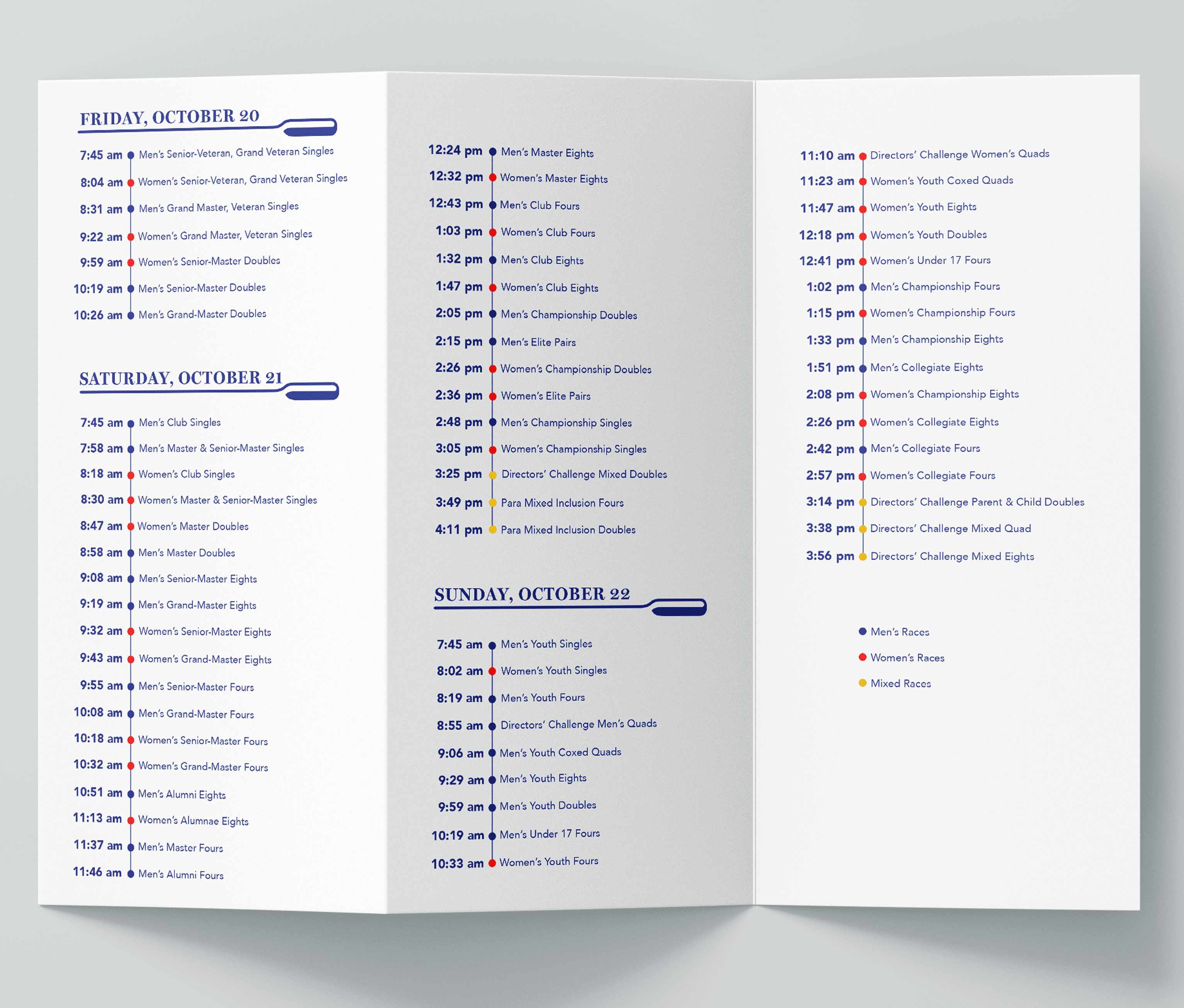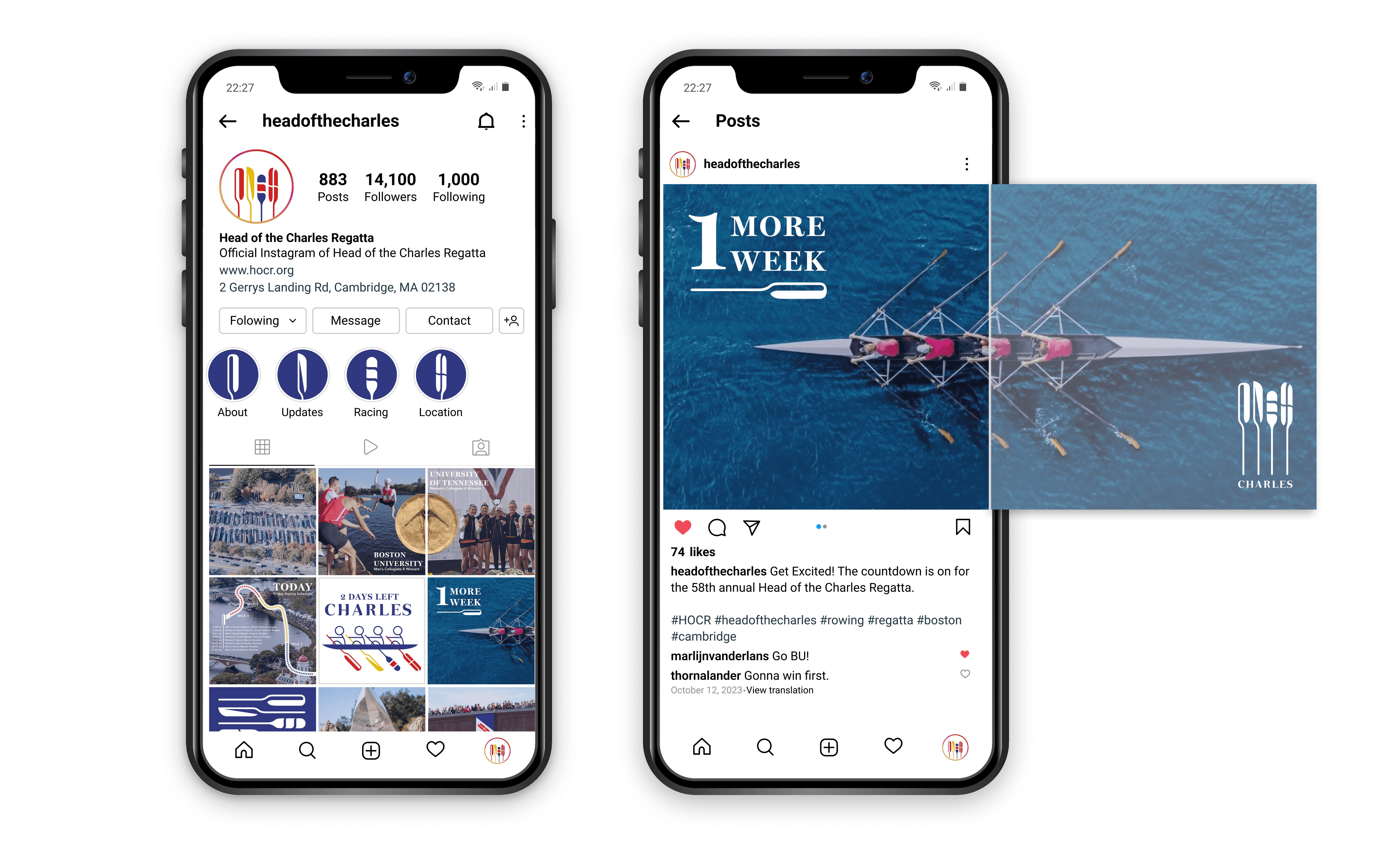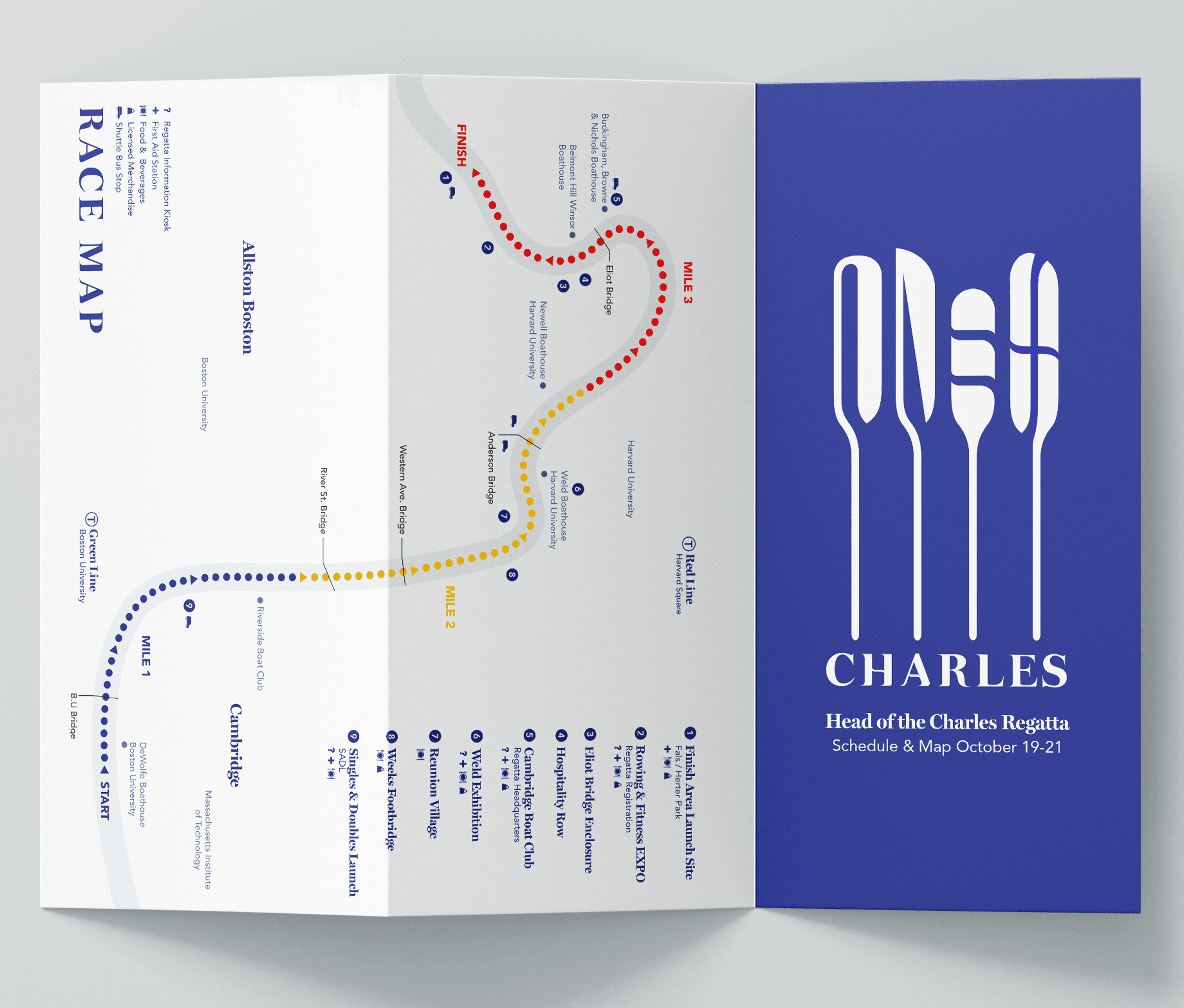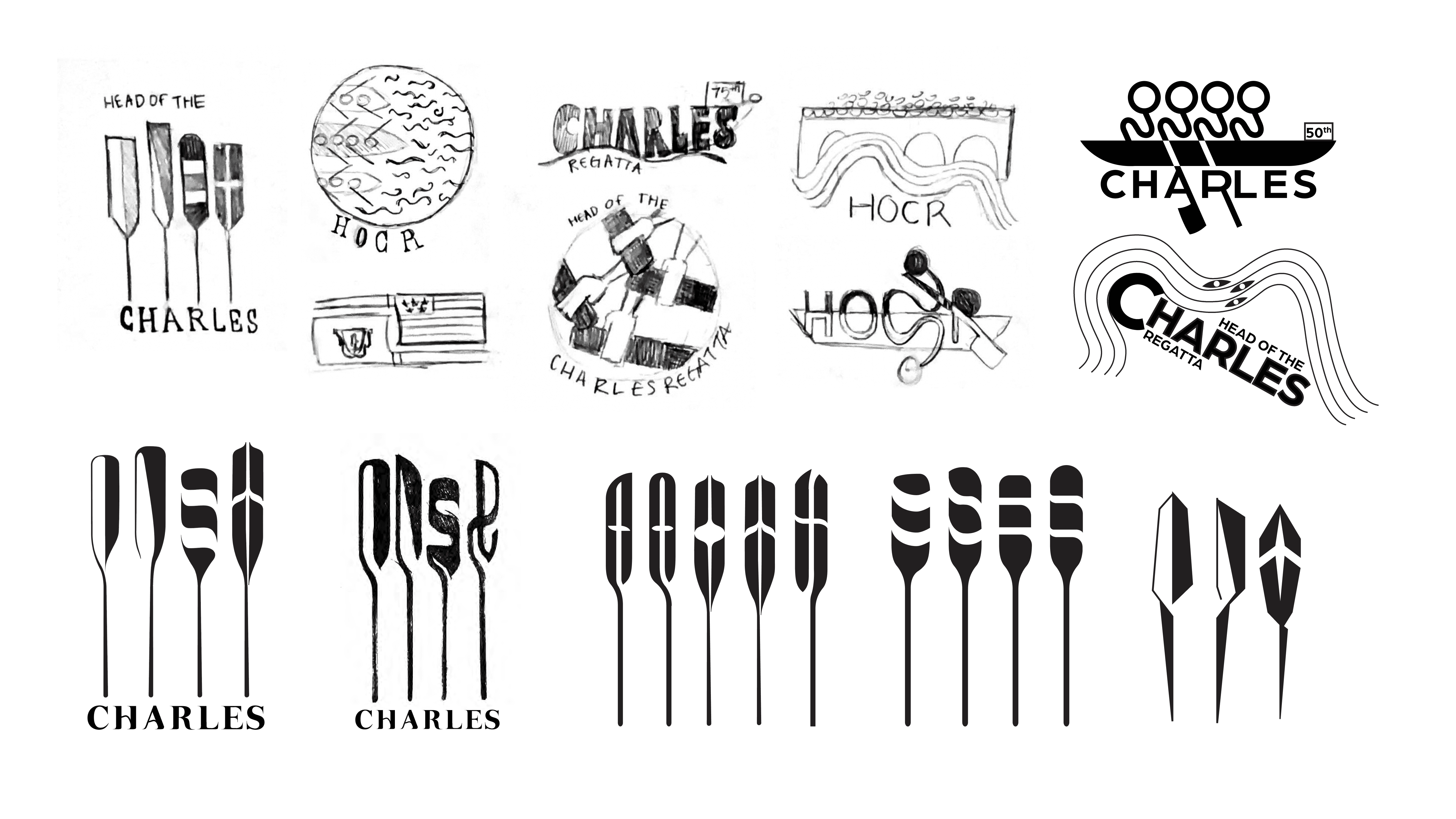The contrast of the traditional style oars in contemporary forms communicates how the rich history of rowing is still relevant today. Adding in the serif “Charles” underneath aids in emphasizing this further while creating a welcoming close-knit culture.