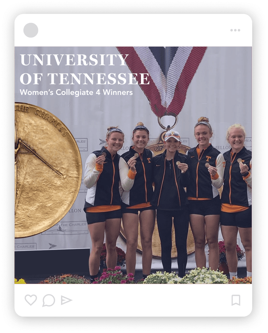 The intention behind creating geometric and connected oar shapes that stand on their own was to give the appearance of both fluidity and strength, much like rowers taking one powerful stroke in the boat.