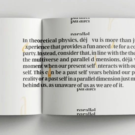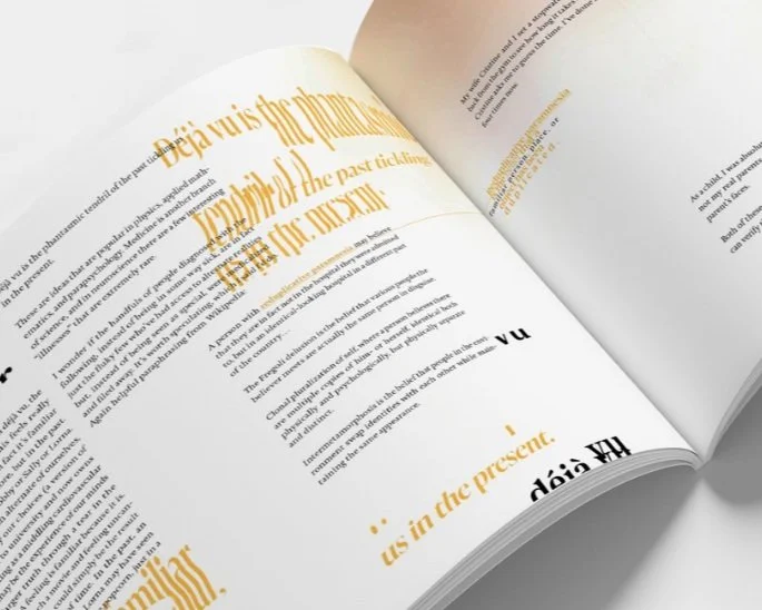 The dream-like wordmark echos the idea of dejá vu by using high contrast, tight leading, and repetitive shapes.