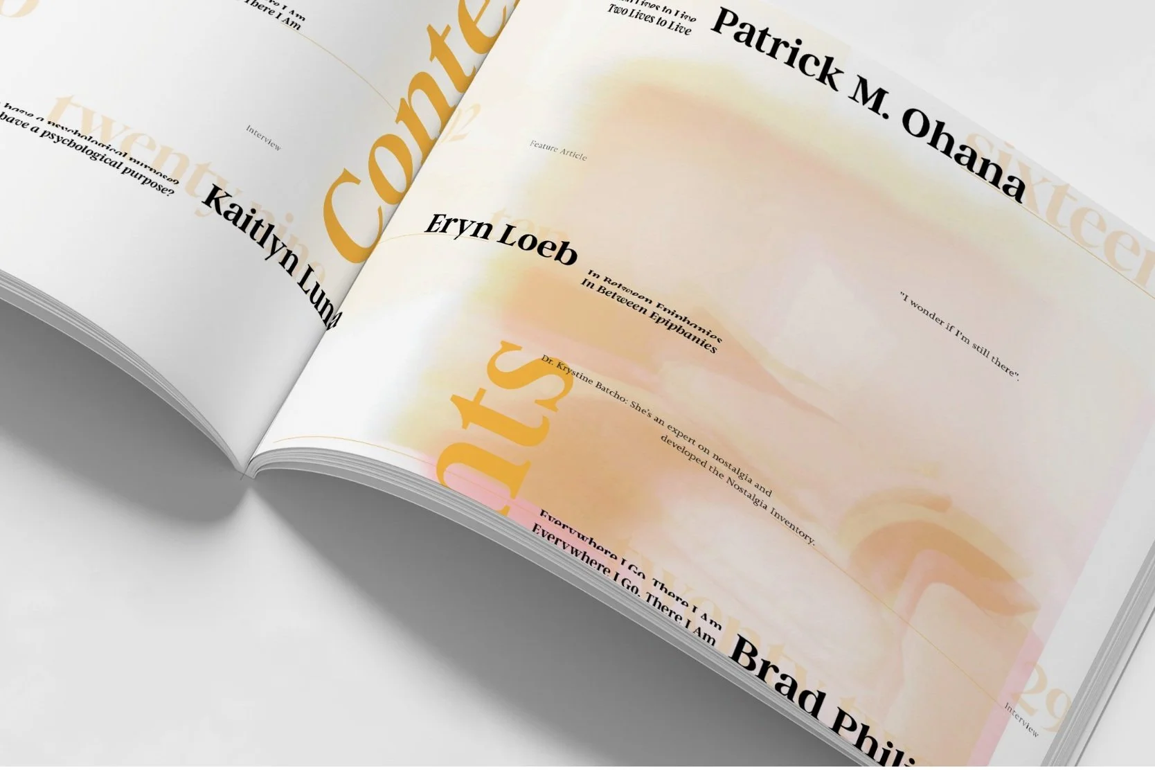 As a contemporary writing magazine, Parallel pushes the boundaries of what a magazine "should" look like to create a more immersive reading experience. Blurred images, abstracted text, and a dynamic grid system display what nostalgia looks like visually.