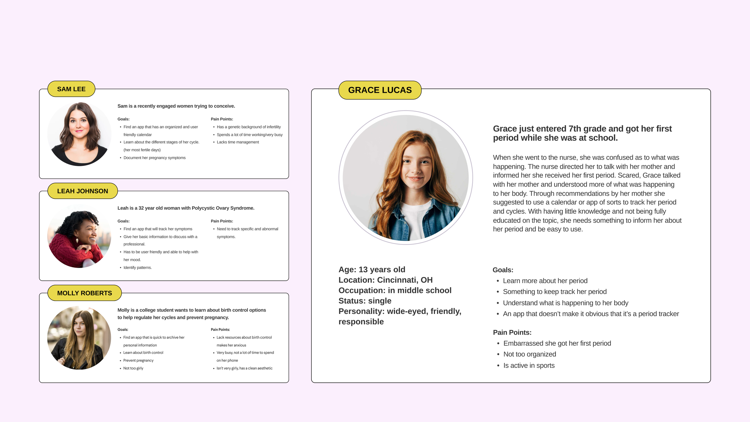 Create an intuitive task flow, simplified navigation, and a modern aesthetic to avoid the childlike feeling many other period tracking apps convey.