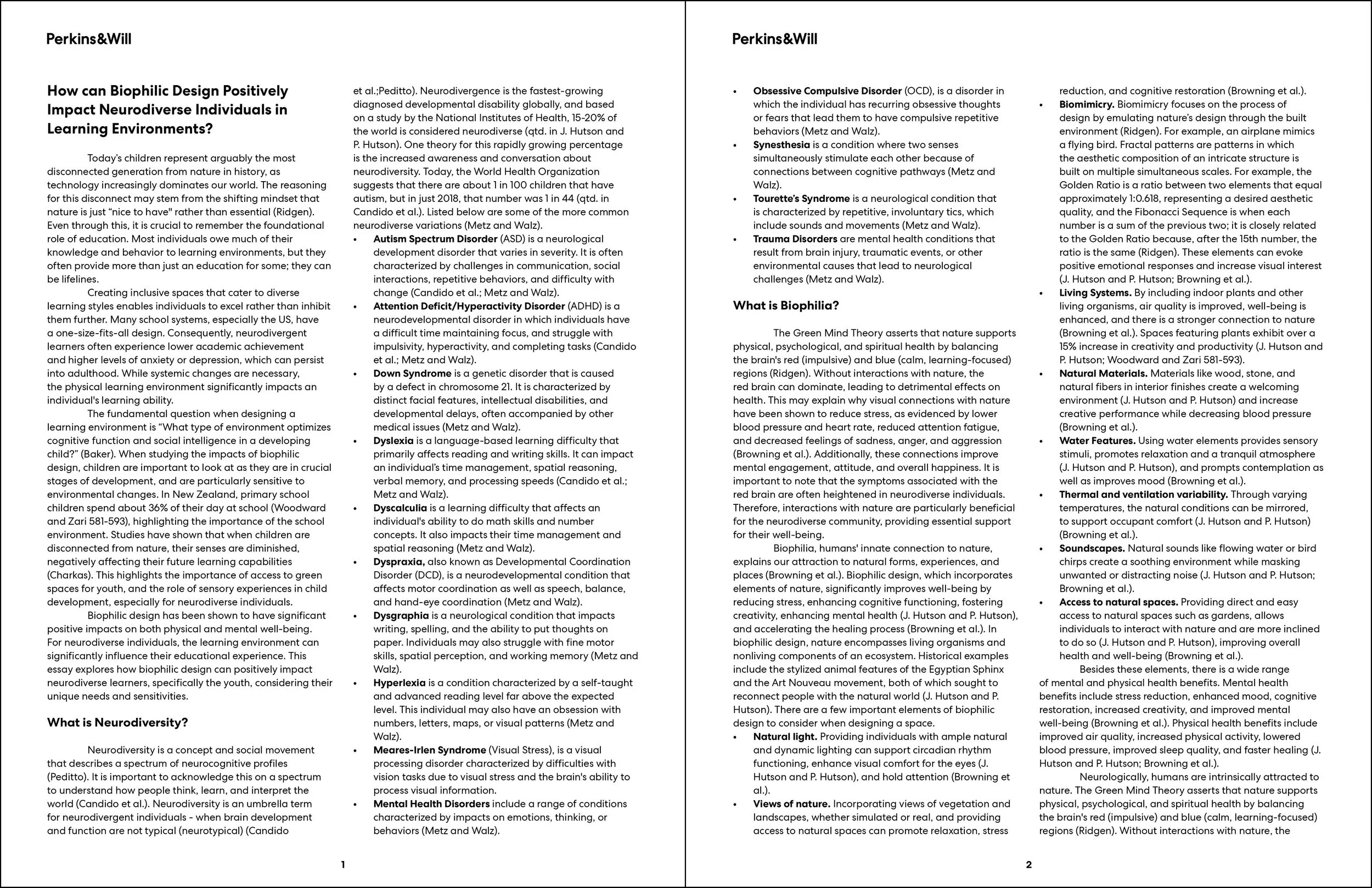 During my time as a Branded Environments co-op, I spent a few hours a week working on a personal research project in which I studied the impacts of biophilia on neurodiverse individuals in a learning environment. Additionally, I was part of the Branded Environments team where I spent my time working alongside other architects, interior designers, and graphic designers brainstorming and researching, pulling precedent images, iterating on conceptual, developmental, and schematic levels, and setting up and working with production files to scale with CAD tools, to design full-scale graphics, branding, and wayfinding and signage for some of PW's largest clients.