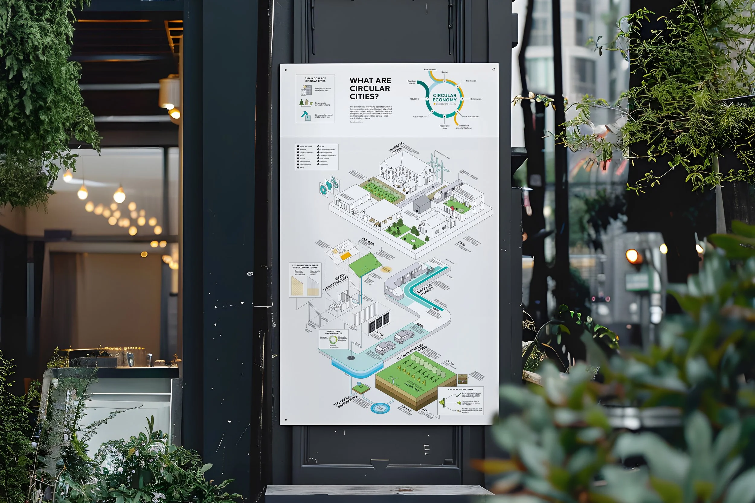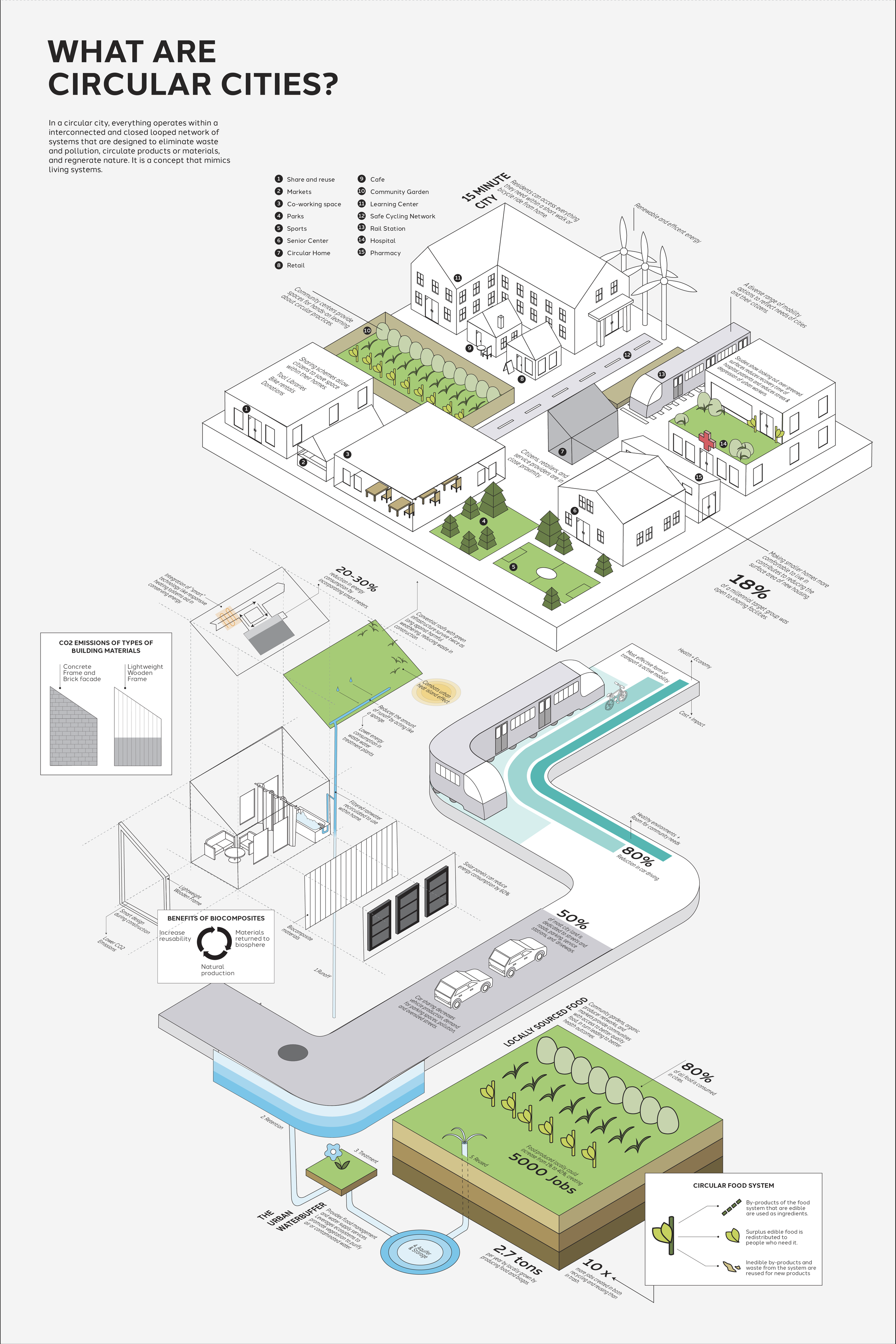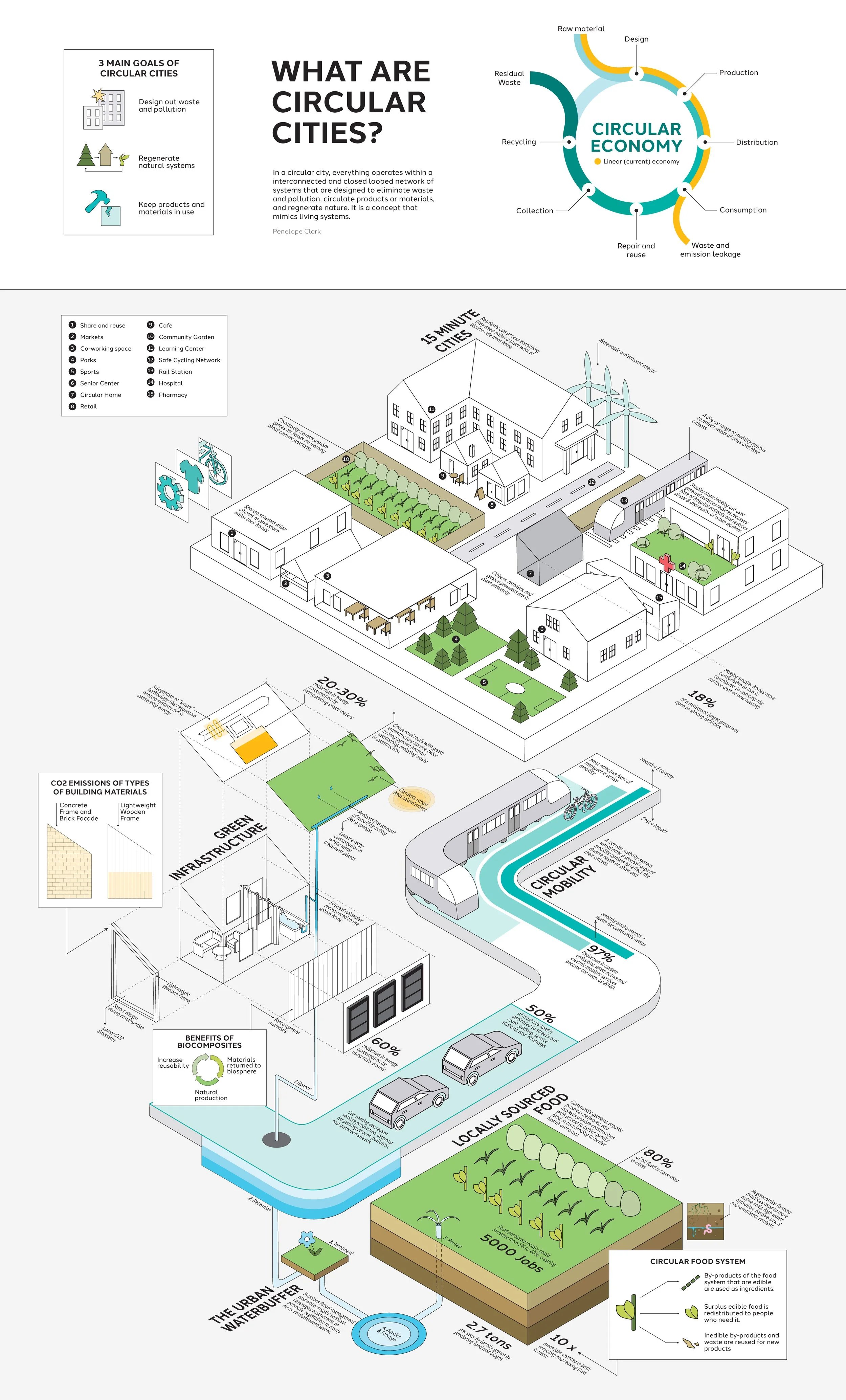 Circular Cities aim to eliminate waste, and pollution, circulate products, regenerate nature, and create a more sustainable environment overall, which is a concept that many cities today are beginning to adopt. The purpose of this infographic is to inform and persuade the reader about what circular cities are and why they are beneficial.