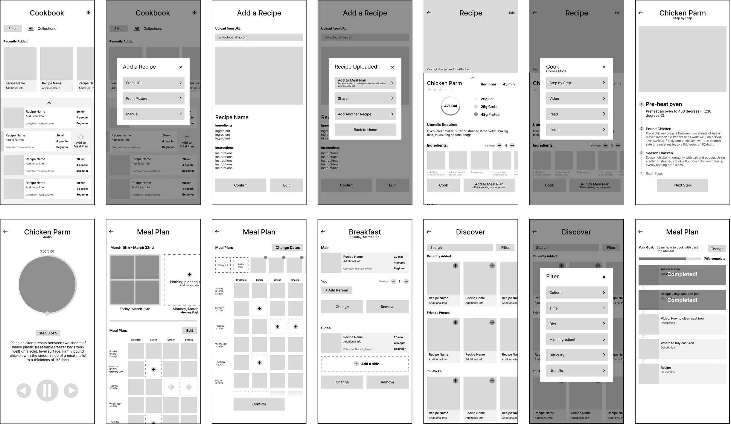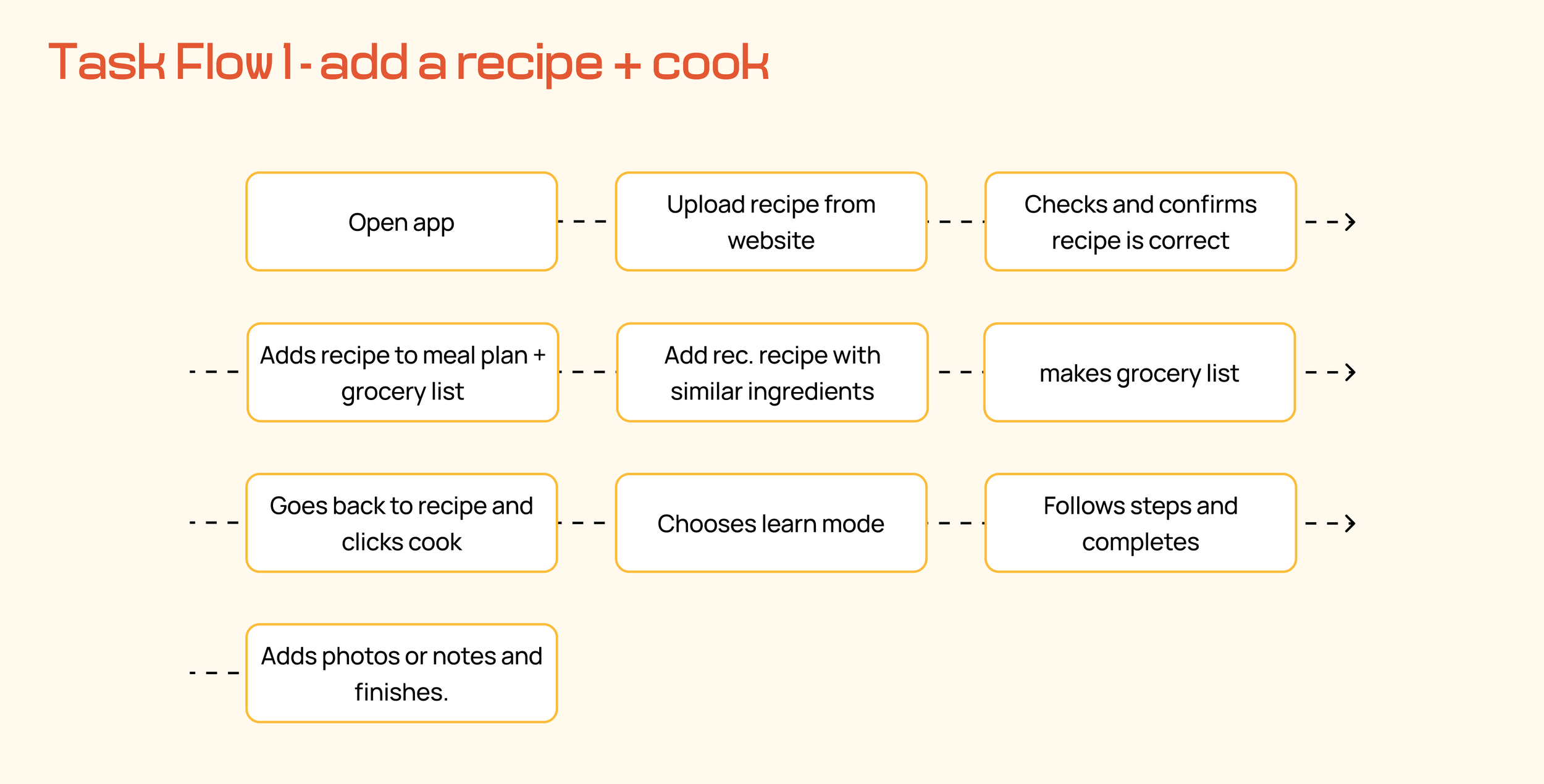 The creation of an ecosystem map allowed me to understand how my users would interact with the app both physically and digitally. Here, I was able to consider how to break down a recipe, tips, or learning points in the most digestible way for a mobile app.